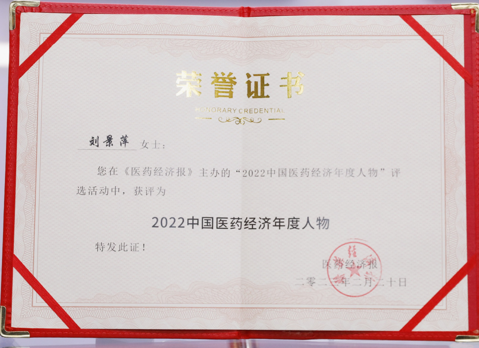 z6尊龙药业集团董事长刘景萍当选“2022中国医药经济年度人物”